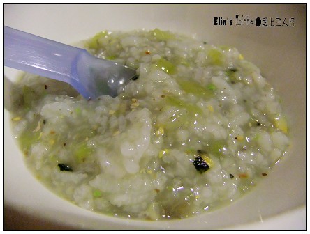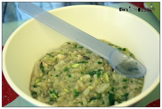 接著小松菜泥/毛豆/鯛魚片在放入粥裡一起煮就完成了~