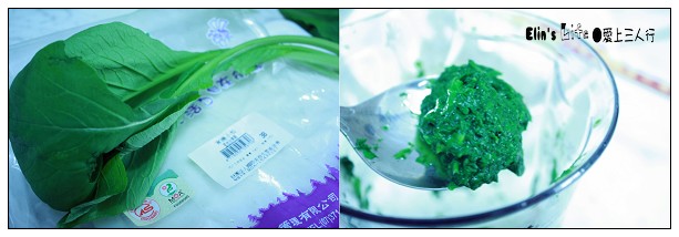 我只取葉子部份用水川燙過,再用CSB-76打成泥.