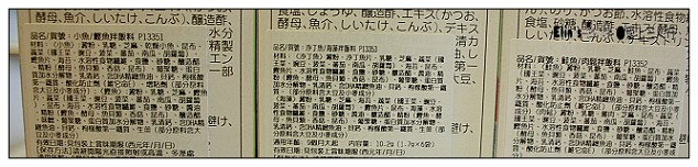 口味分別是小魚/鏗魚/沙丁魚/海藻/鮭魚/肉鬆.